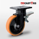 Lenkrolle mit Plattenbefestigung und Bremssystem mit verstärkte Konstruktion CASTKPW-ZPU 200K-HC mit Polyurethan-Laufbelag/ 200 mm/ Tragfähigkeit 1000 kg / Doppelkugellager