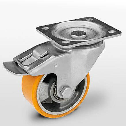Lenkrolle mit Bremssystem KPM-ALPU 100K-HC mit gegossenem Polyurethan-Laufbelag Tragfähigkeit 200kg /Durchmesser 100mm/ Doppelkugellager