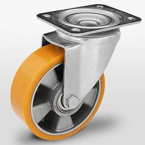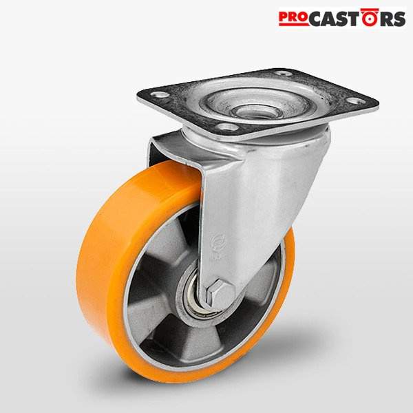 KPM-ALPU 160K schwenkbares schwenkbares Transportrad mit einem Rad mit gegossenem Polyurethan-Profil. Tragfähigkeit 500 kg / 160 mm / Kugellager
